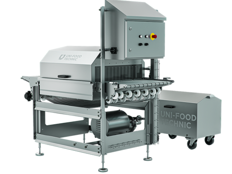 The skinning machine removes up to 100% of the meat from the skin, hereby creating a by-product of high value. The automatic skinning machine V3668 is a complete solution, and there is no need for more operators.