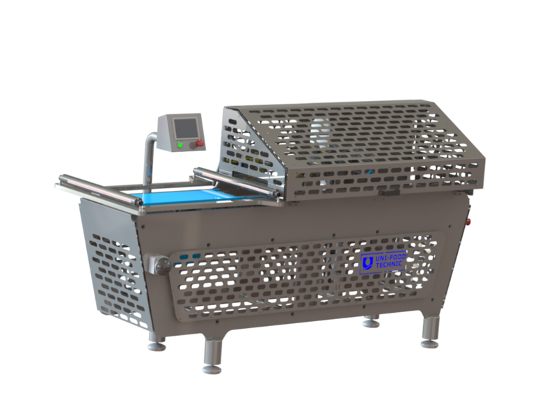 The machine is constructed in Uni-Food Technic’s well-known hygienic design with an open construction that is easy to clean and maintain.