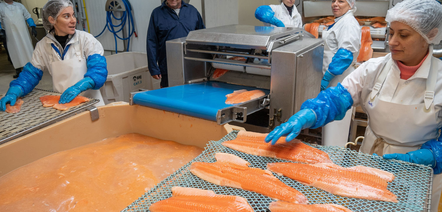 In the cold stores at Norlax in Outrup, in the southwestern part of Jutland, meter high stacks of boxes with raw salmon from Norway are waiting to be processed. The process from whole fish to fillet ends at the skinning machine, which has processed tons of salmon and trout every working day since 2008 – with only few operational issues. The skinning machine and the other processing equipment are operating in a challenging environment of salt and water.