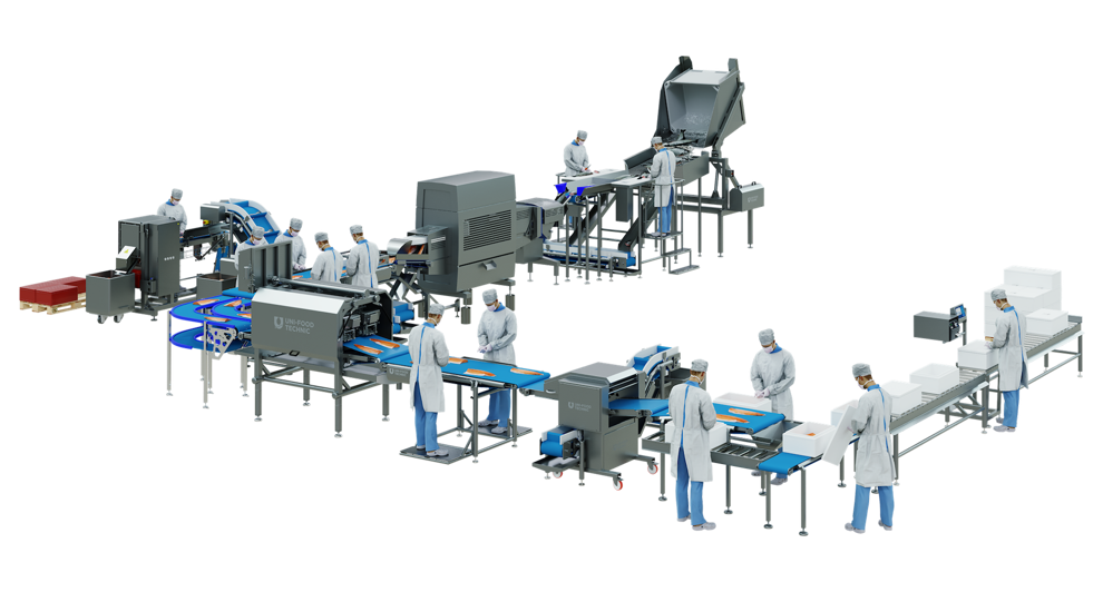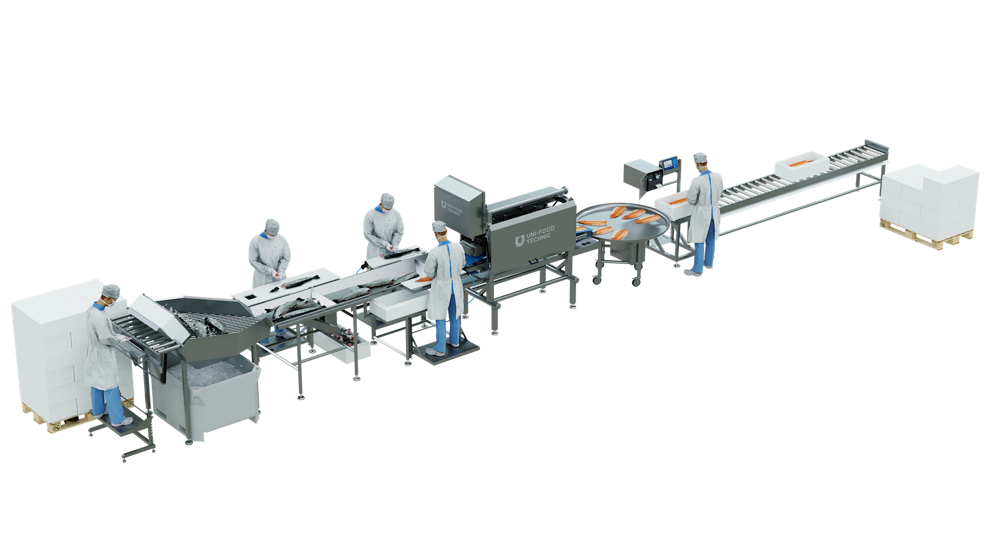 Turnkey filleting lines from Uni-Food Technic are made up of user-friendly standard processing machines and equipment of high quality that are developed with the purposes of providing you with high yield and the necessary efficiency for your needs without having to rely on costly, specialized operators.